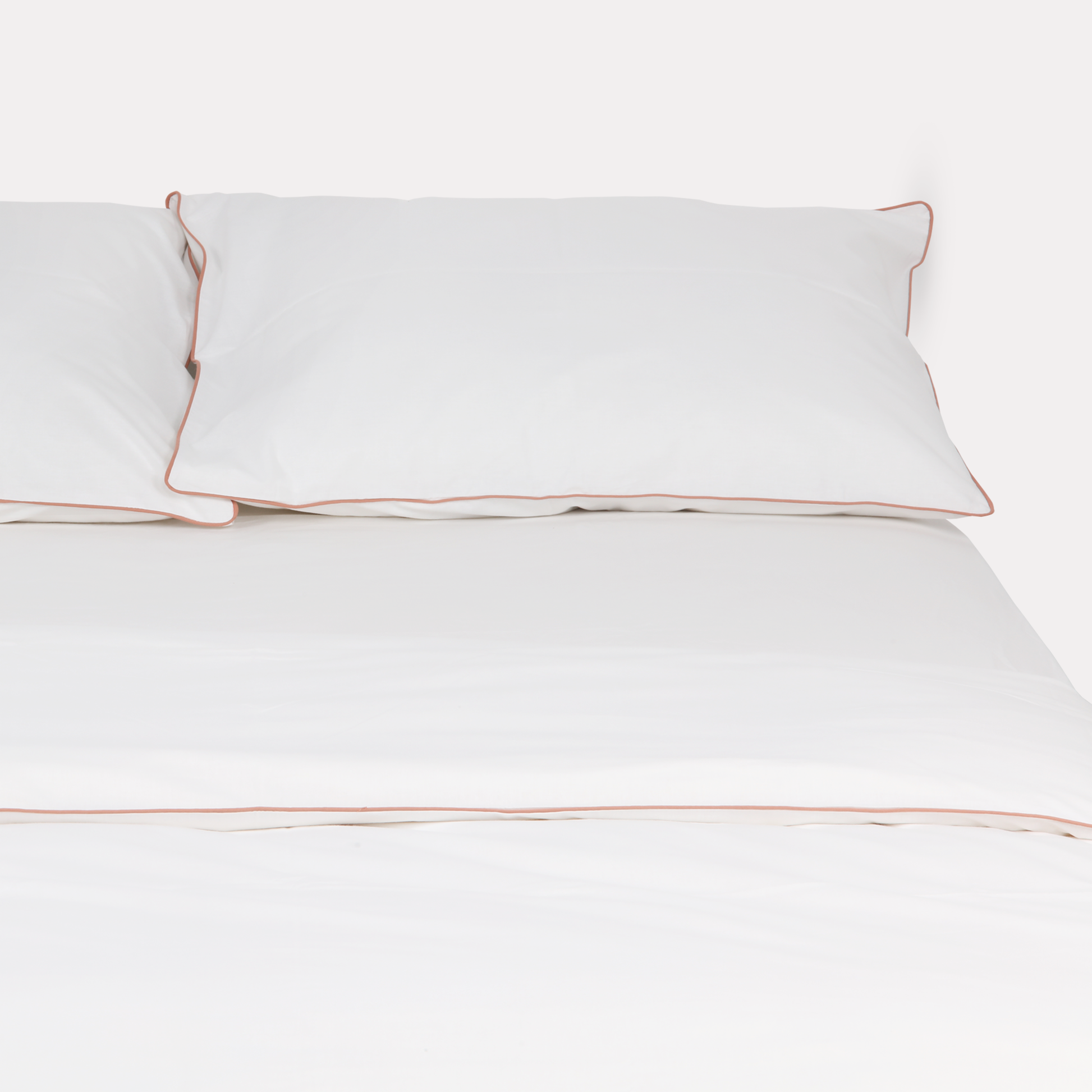 Classic Percale - Duvet Cover Set - White with Peach Piped Edge